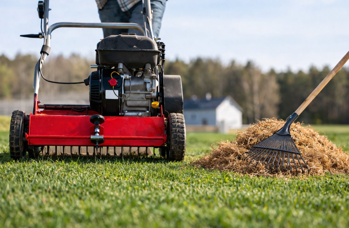 Durant la saison froide, du gazon mort (la chaume) peut s'accumuler au niveau du sol, favorisant l'apparition d'insectes nuisibles à la santé de la pelouse. Le déchaumage permet de retirer tout résidu organique en surface du terrain pour permettre une meilleure absorption des traitements, pluie, vitamines et soleil. Une couche trop épaisse de chaume isole le sol des bienfaits naturels et des traitements.